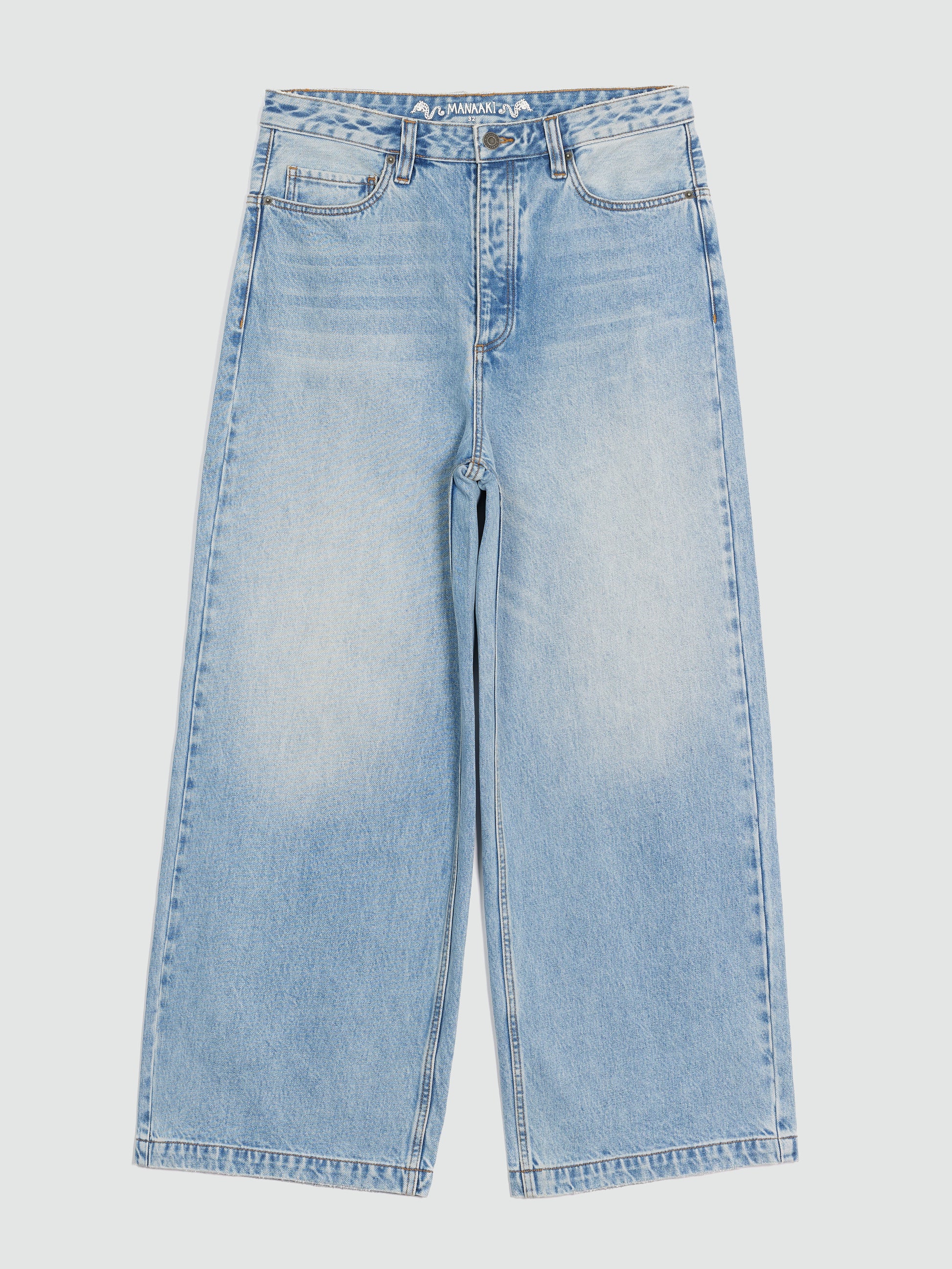 Cut with an extra wide leg opening, the Nui (or big) jeans are the ultimate super-relaxed fit. Inspired by 1990s and early 2000s skater denim, the Nui jeans have been stonewashed with vintage worn-in highlights combined with extra large back pockets to complete the look.